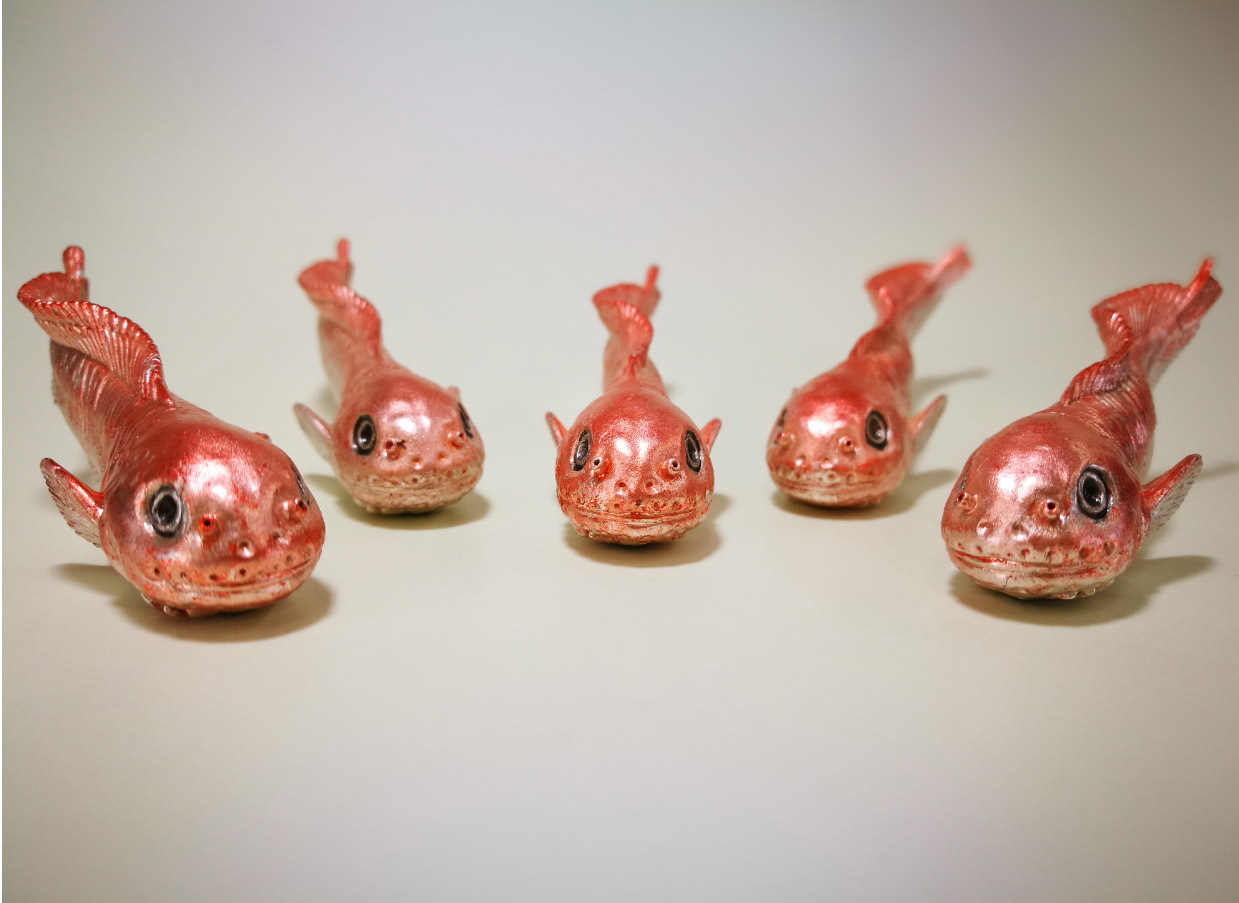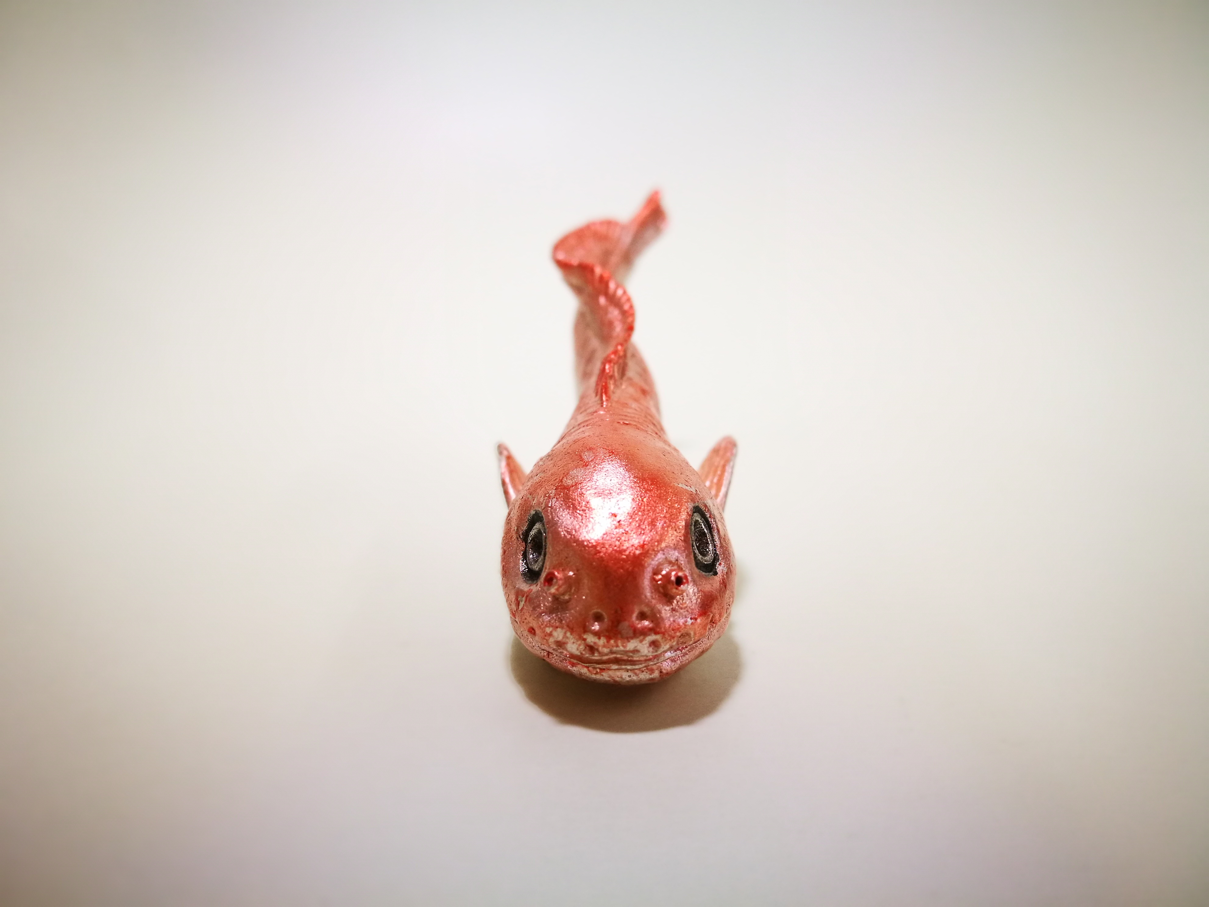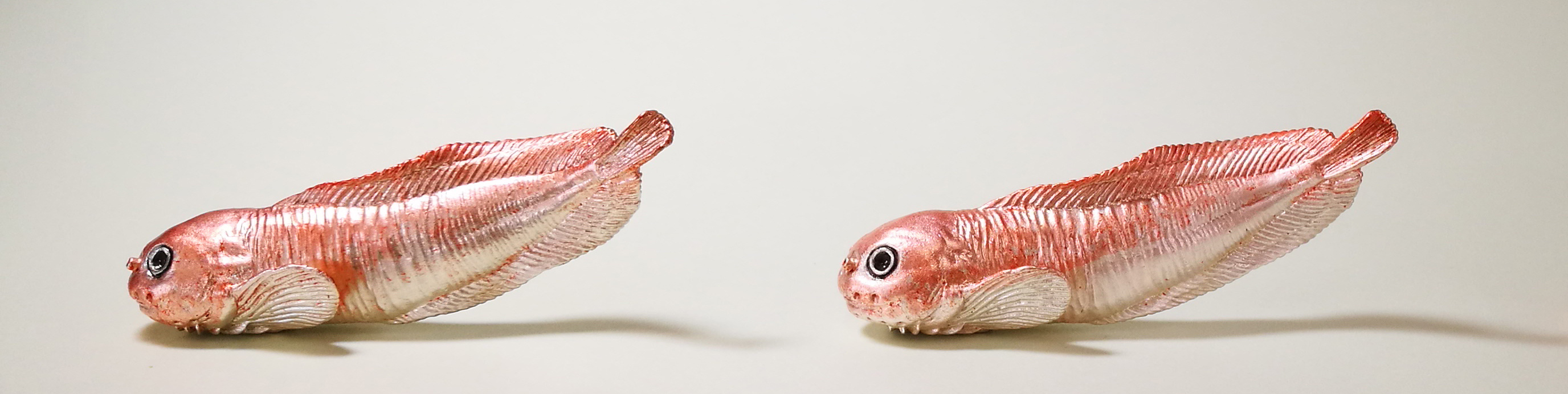 手のひらに乗る小さな作品ですが、深海魚特有の質感や動きを捉え、異様な雰囲気を放つ作品です。中之沢美術館の展覧会に出品した際はポスターにも使っていただき、実物より大きく大きく印刷されていて愉快でした。